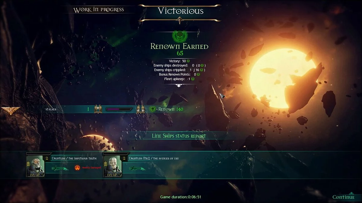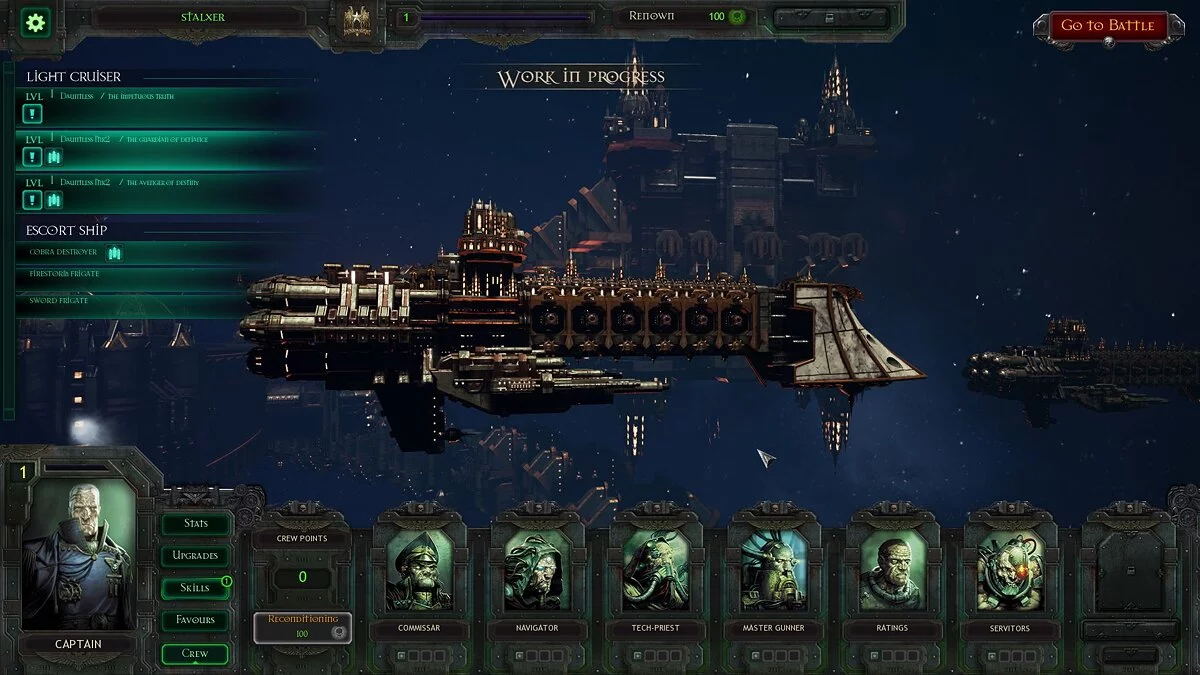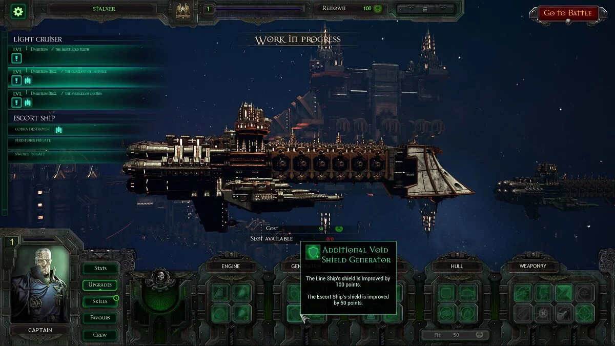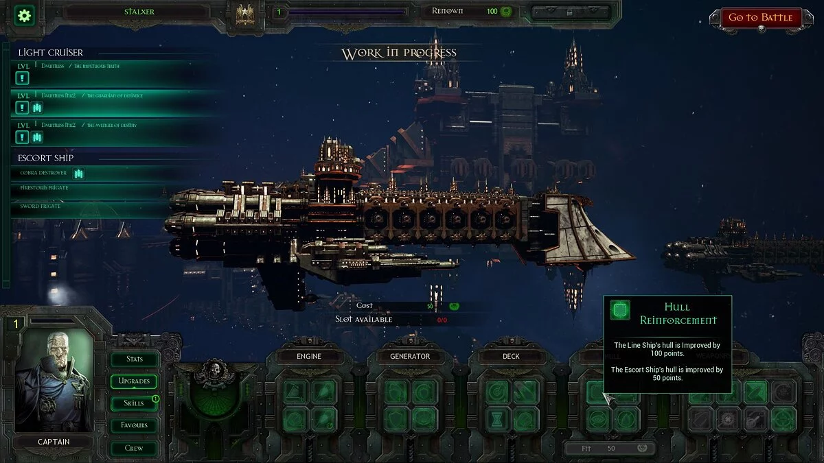 Если с первым в Battlefleet Gothic: Armada все понятно, и улучшения действительно оказывают небольшое влияние на геймплей, то вот второй элемент геймплея по ходу бета-тестирования оценить невозможно. Аналогично совершенно не понятно, как будет изменяться облик корабля по мере роста его уровня. Вероятно, ответы на эти вопросы появятся после релиза.