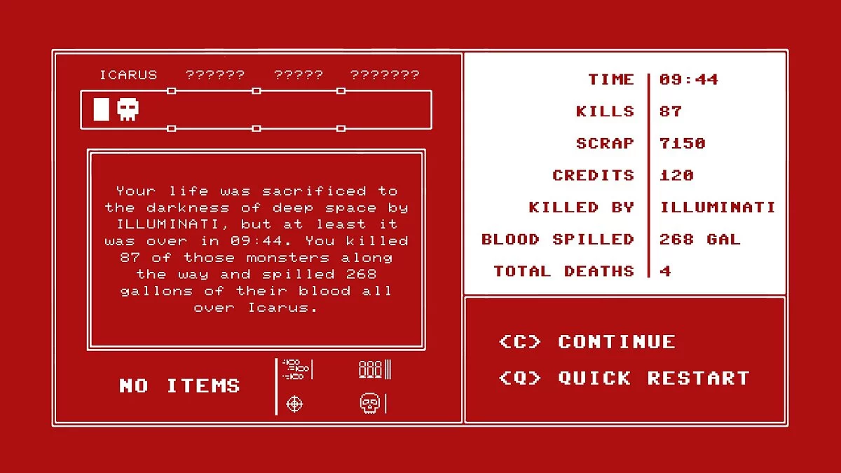 Патронов мало, но вот стрелять в STRAFE просто кайф. Тут вам и расчлененка, и море крови, да и враги любят собираться в кучу, чтобы устроить совместное сафари за вашей тушей. Не зря в послеигровом окошке со статистикой ведется учет пролитой игроком кровищи. В целом, сама детализация игры в таких моментах очень радует. Даже несмотря на сам графический стиль, выдержанный в лучших традициях 96-го года, выглядит все стильно и сочно. Это если брать те времена и сам жанр инди, где это в норме вещей. Нынешнее поколение не оценит, а вот «старики» и глазом не поведут.