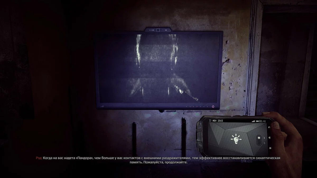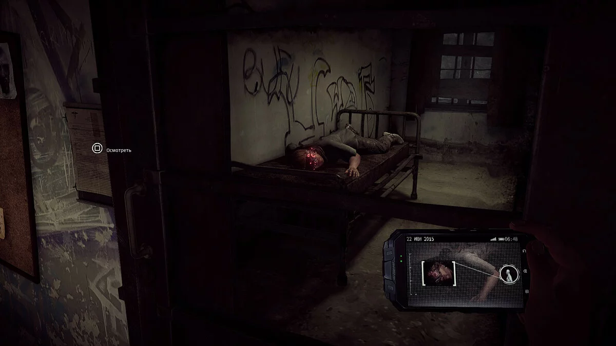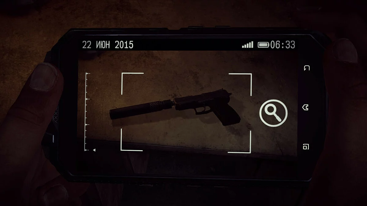 Главным орудием главного героя является его смартфон, в котором установлено сразу несколько ценных программ. Он может принимать сообщения и вызовы, переходить в режим тепловизора, сканировать объекты, показывать фото и подсвечивать область со следами крови. Все это в той или иной степени нам нужно использовать, чтобы успешно дойти до заветного финиша. Ах да, еще в Get Even есть оружие, хотя его роль и механика стрельбы реализованы мягко говоря слабо.