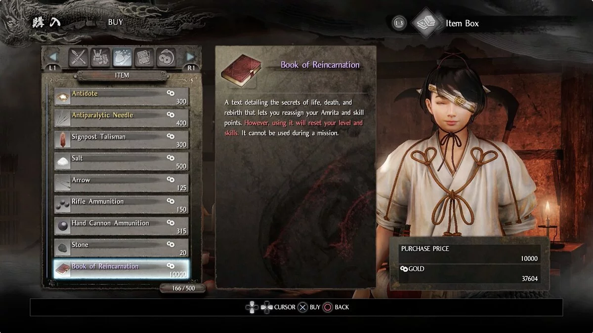 Внутри кузницы посмотрите доступные для покупки предметы. Вам нужна Книга Реинкарнации (The Book of Reincarnation). Она стоит 10 тысяч золотых, что дорого для новичка, но это вполне реальная сумма. После покупки вы сможете использовать книгу через склад, который находится так же в лагере.