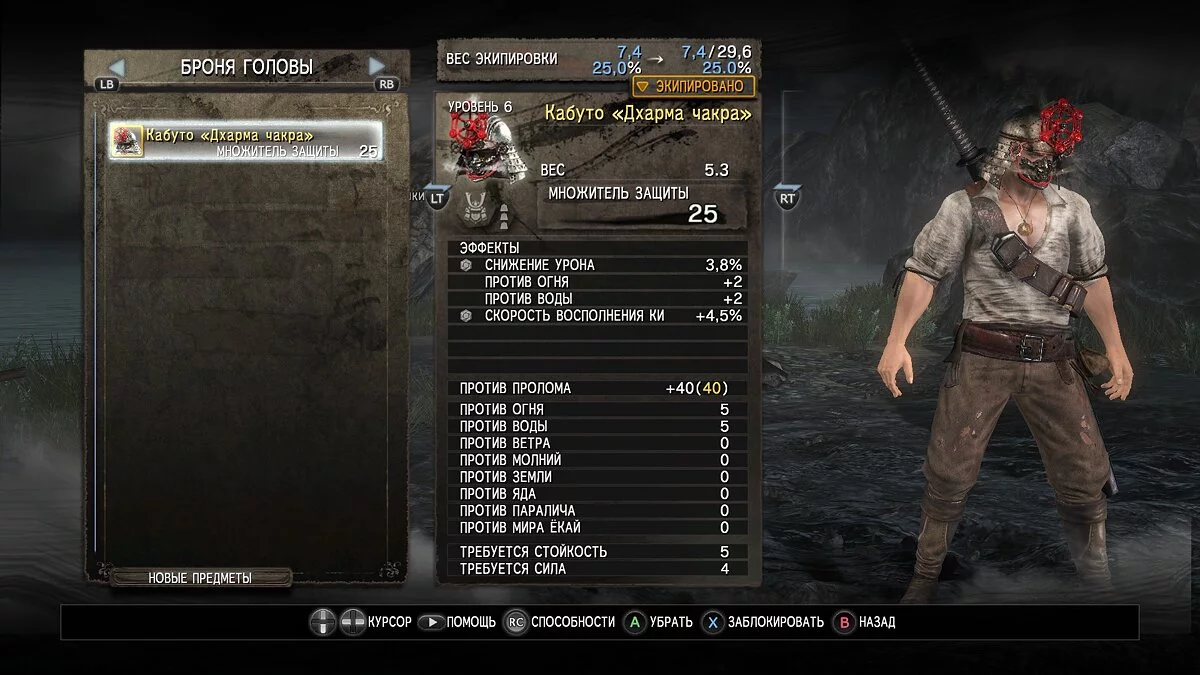 Во-вторых, Team Ninja проделали очень большую работу над системой предметов в игре. Как и в Dark Souls, главный герой может носить различное оружие и броню, но отличительной особенностью Nioh является генерация свойств у каждого «выпавшего» предмета. Грубо говоря, два одинаковых внешне меча могут обладать разными уровнями качества и абсолютно разным набором свойств.