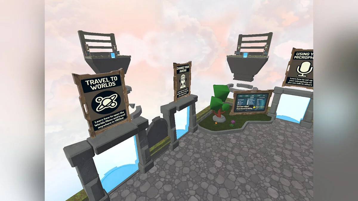 После запуска VRChat нужно пройти этап настройки программы. Разработчики очень ответственно подошли к этому вопросу и создали специальную комнату помощи в игре. В ней расположены «врата» к обучающим видео, а также экран с опциями приложения. Дальше останется только войти в один из сотен миров, где общаются другие жители Интернета.