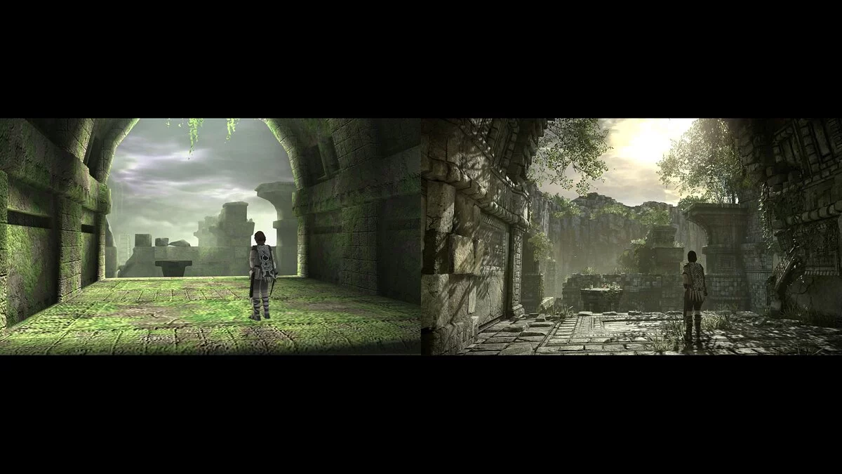 Слева оригинал Shadow of the Colossus, справа ремейк для PS4: