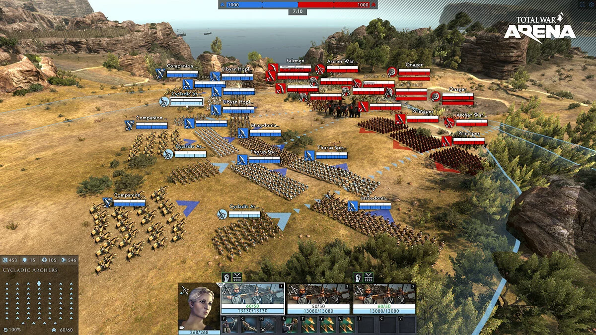 Это и конница, и лучники, и мечники, и копейщики, и метатели дротиков. Позже добавляются и другие типы юнитов, такие как боевые псы, осадные орудия и даже слоны. У каждого рода войск есть свои преимущества и недостатки, при этом баланс в игре устроен в угоду истории, а не модной концепции «камень-ножницы-бумага». Благодаря этому бои в Total War: Arena ощущаются естественно и реалистично.