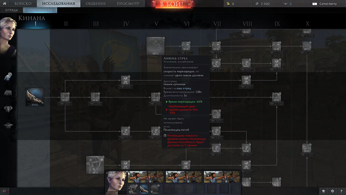 Он тоже набирает уровни, которые открывают доступ к двум дополнительным способностям командира. Первая у него есть по умолчанию, а еще две появляются на 3 и 5 уровнях. Дальнейшая «прокачка» позволяет нанимать высокоуровневые отряды. Именно так раньше была устроена система развития в Total War: Arena, но Wargaming вместе с Creative Assembly придумали, как ее можно расширить.