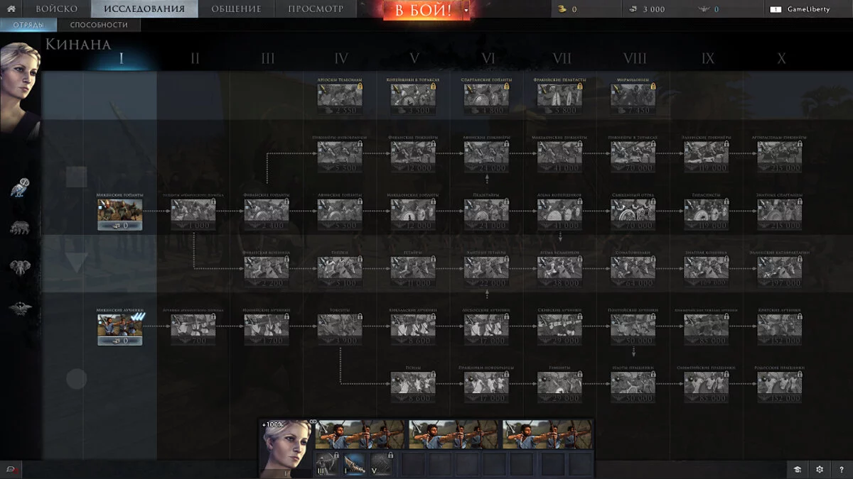 Исследование новых юнитов устроено схожим образом. Изначально доступны только базовые виды войск, но позже армию можно развить во что-то более специализированное, заменив одни юниты другими. Чем дальше, тем больше вариантов. К тому же можно улучшать снаряжение у каждого отдельно взятого отряда. Правда, на все и сразу времени не хватит, так что так и так придется выбирать.