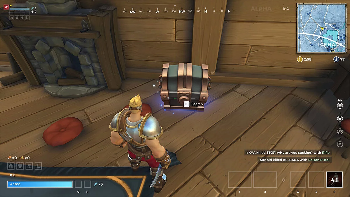 Приоритетная задача в первые минуты — найти оружие и броню, способности и зелья не так важны и полезны. Даже с простым кинжалом можно зарезать любого безоружного противника. Если не можете найти сундук, не паникуйте, а двигайтесь дальше. Сундуки с предметами в основном расположены в зданиях и потайных местах, обыскивайте в первую очередь их.