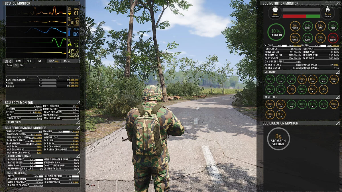 Самый лучший способ выжить в SCUM — это избежать встречи с противником. Если же это не удалось, то остается лишь сделать так, чтобы персонаж не умер от очередной дырки в боку. Тип и сила раны зависит от того, каким образом она была получена. Узнать о текущем состоянии здоровья персонажа вы можете на соответствующем экране. Да, мы тоже считаем, что он очень информативен.