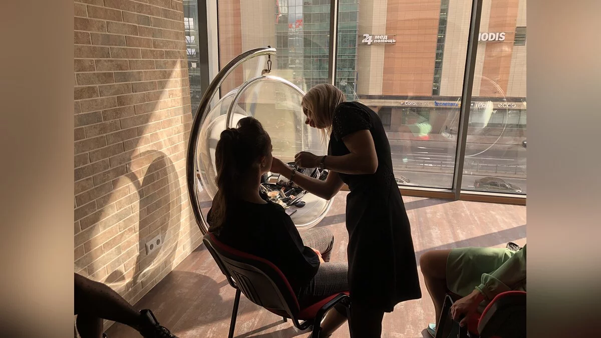 На каждом этаже офиса есть опен-спейс, уютные столовые, комнаты отдыха с массажными креслами, а также большой зал, где можно поиграть в настольный хоккей и другие игры. Чувствуется не только рабочая, но и творческая атмосфера. В одной из комнат проходила подготовка девушек для дальнейшего выступления, о котором вы прочтете чуть ниже.