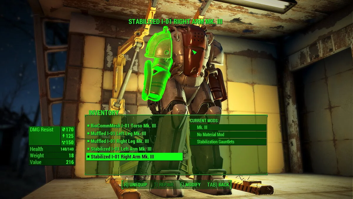 Если вы состоите во фракции Институт, то сможете выкрасить костюм в соответствующие цвета и получить бонус к Интеллекту, Подземка делает то же самое, но только с Восприятием. Броню можно подобрать на станции ремонта силовой брони к северо-западу от убежища 111, но не затрагивает Красную Ракету или Сэнкчуари, за счет чего не конфликтует с другими модами.