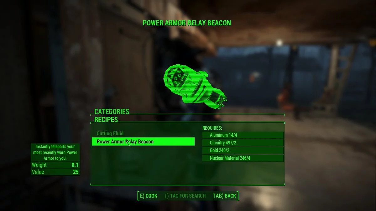 После крафта всуньте модуль в нужную силовую броню и не забудьте поставить ядерный блок, иначе она не заработает. У костюма будет очень большой запас здоровья, но его все же можно убить. Чтобы вызвать костюм на поле боя, в химлаборатории нужно скрафтить специальную гранату, а если швырнуть её не куда попало, а под ноги врагу, то он будет раздавлен костюмом после десантирования с воздуха!