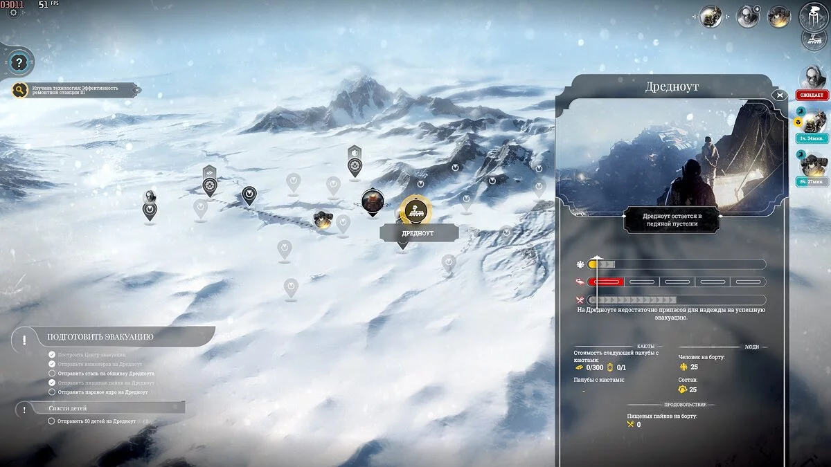 Мы бы рекомендовали держать полную смену инженеров даже в ущерб исследованиям. С момента первой поломки и до взрыва будет всего 3-4 аварии, так что торопитесь. Надеемся, вы запасли достаточно ресурсов. Отправьте их как можно скорее вместе с людьми (игра будет подкидывать вторичные квесты на эту тему) на Дредноут.