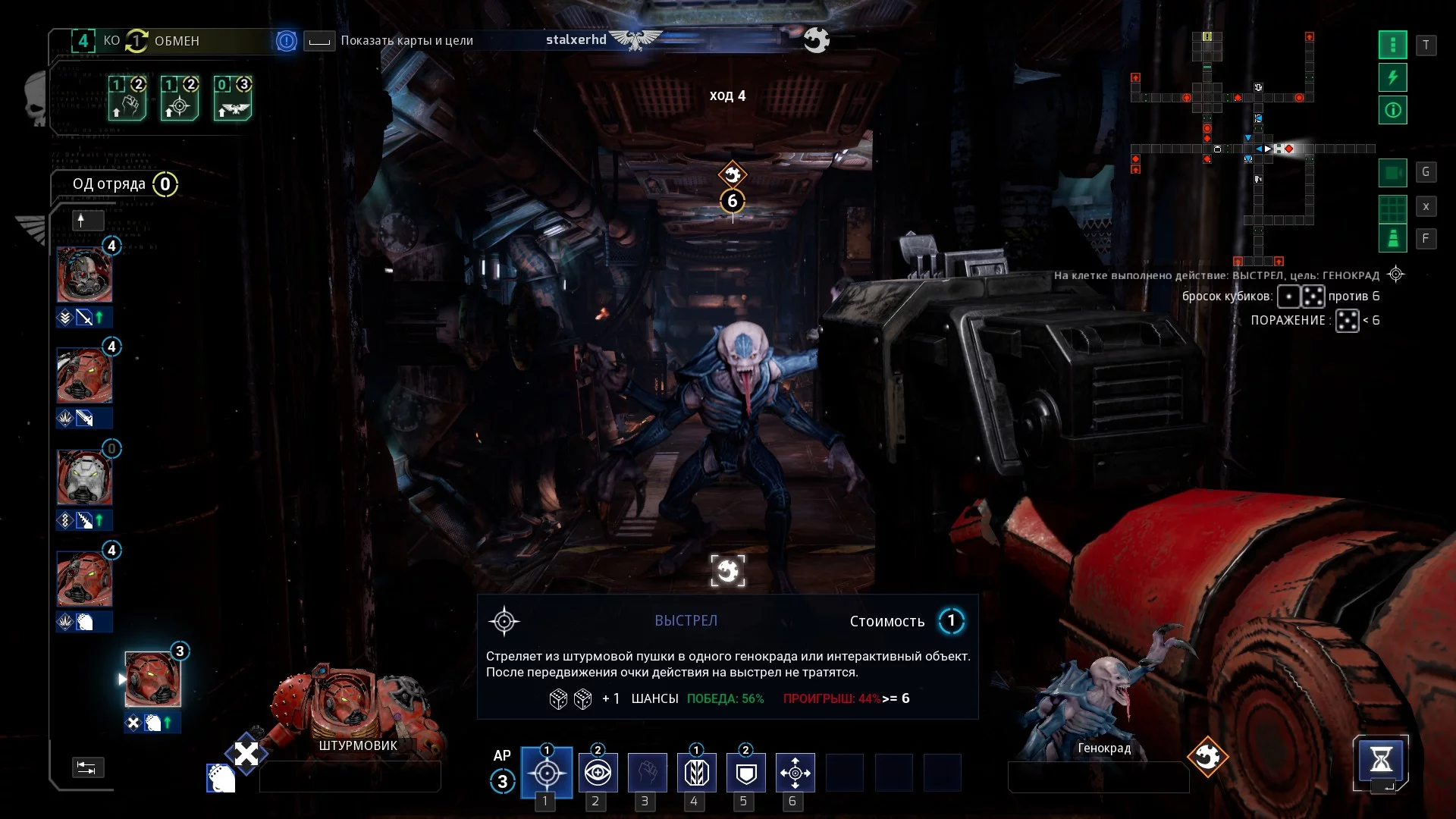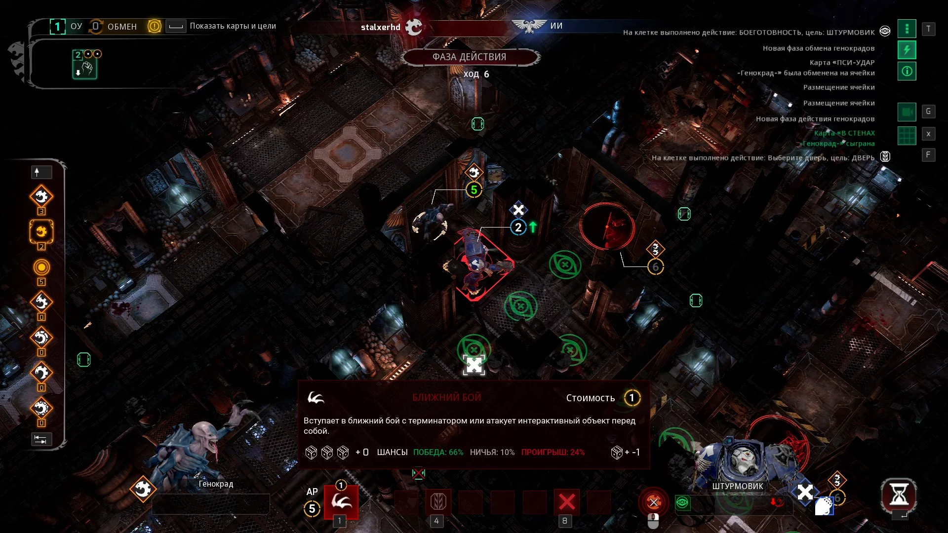 Странности есть и в механике очков действий (ОД). Если в привычных тактических пошаговых стратегиях перемещать отряд можно по области за одно очко и командовать за второе, то в Space Hulk: Tactics любое действие тратит ОД, даже поворот на клетке! В X-Com, например, солдат мог повернуться, занять позицию или совершить какое-то небольшое действие, вообще не расходуя очков.