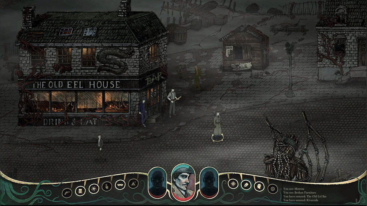 Нам представилась возможность не только пообщаться с разработчиками, но и немного поиграть в небольшую демо-версию. Stygian: Reign of the Old Ones оставила поистине невероятное впечатление, ведь она не только завораживает своей мрачной атмосферой, но и удивляет на каждом шагу. Вот ты идешь в бар по улицам угасающего от ужаса города, вот ты уже сводишь с ума несчастного бедолагу, снимаешь проститутку или закидываешься наркотиками, чтобы сохранить здравый рассудок, а то и вовсе завязываешь гомосексуальные отношения.
