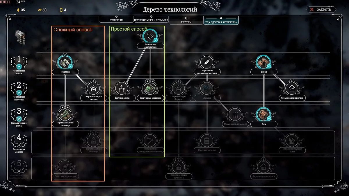 В Frostpunk существует два способа добывать еду и каждый требует дополнительных исследований в мастерской, смотрите соответствующую вкладку: