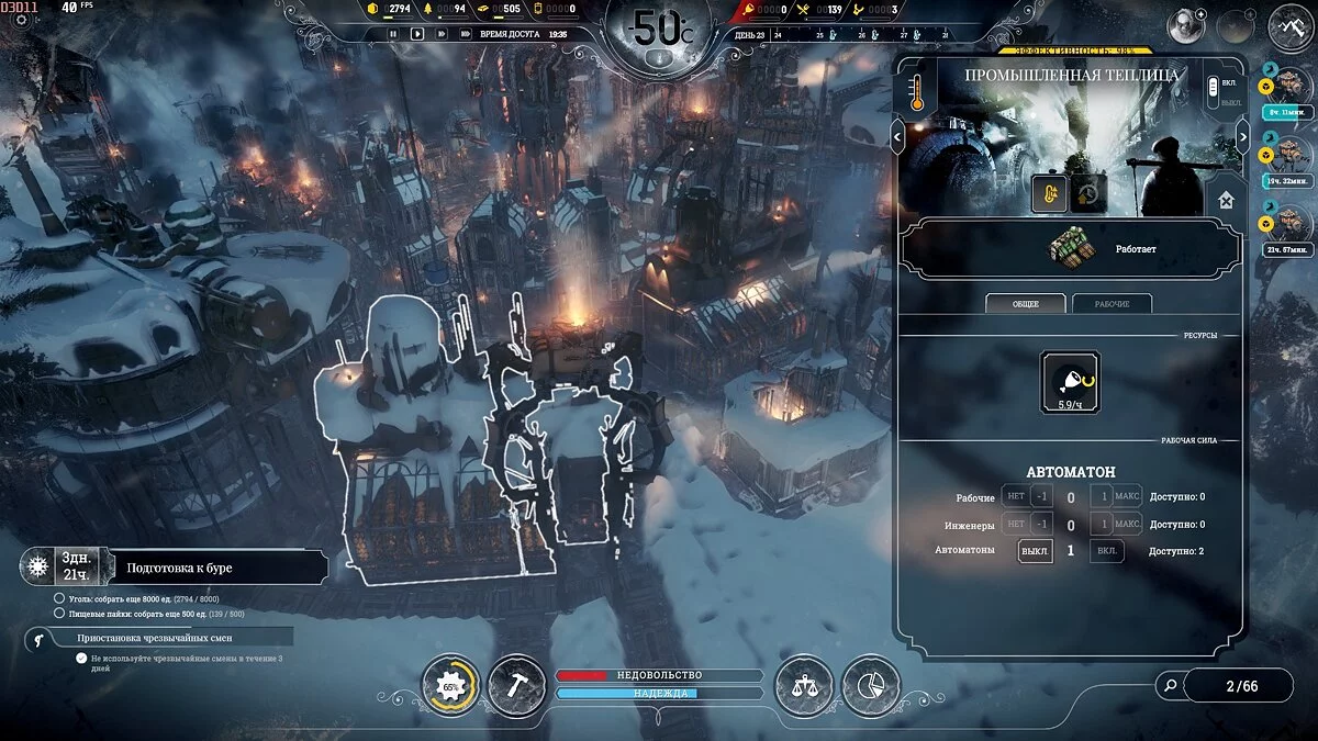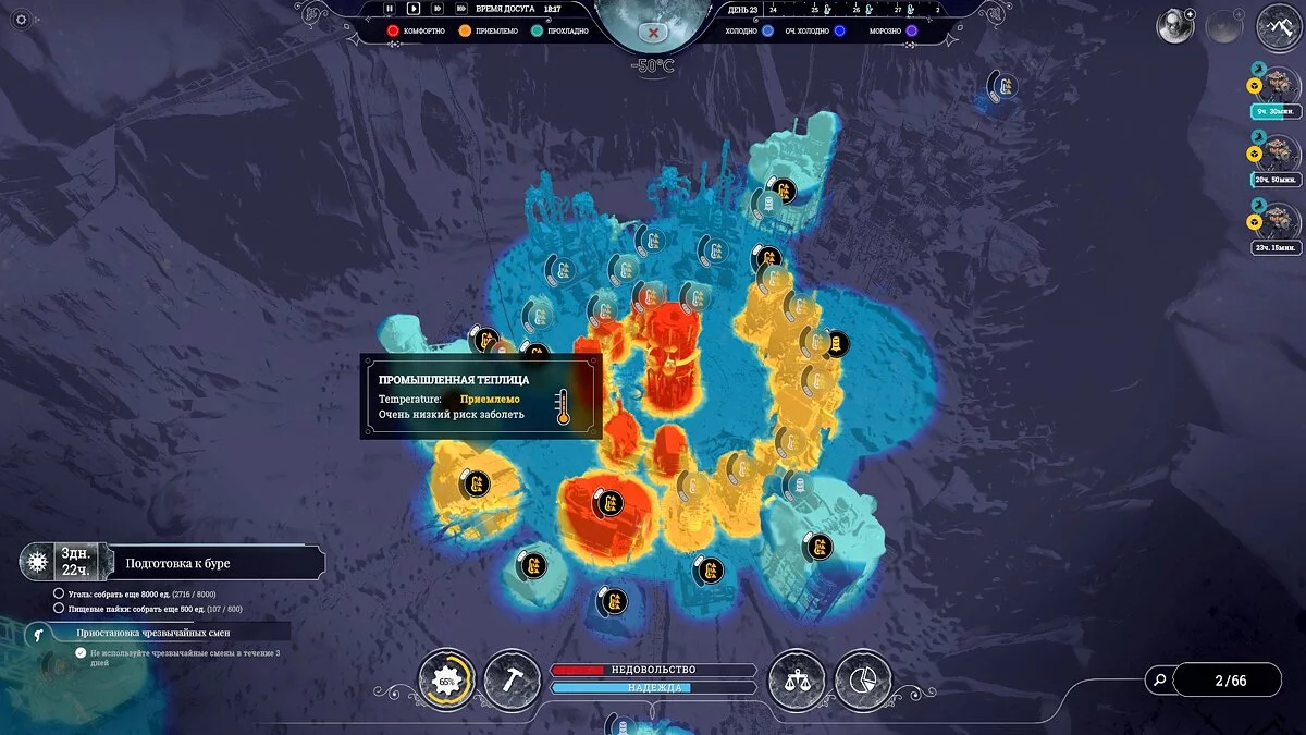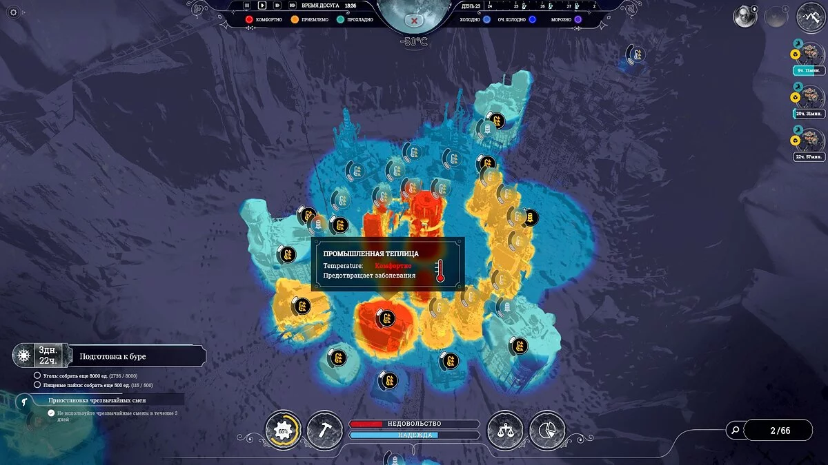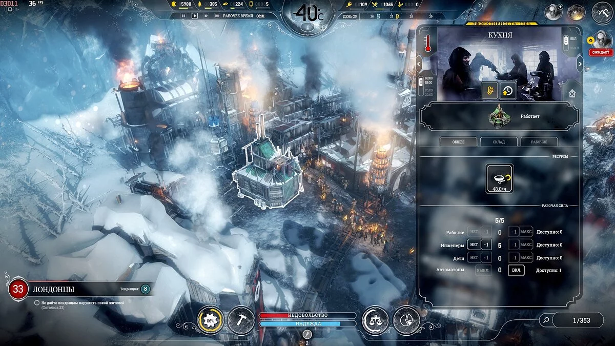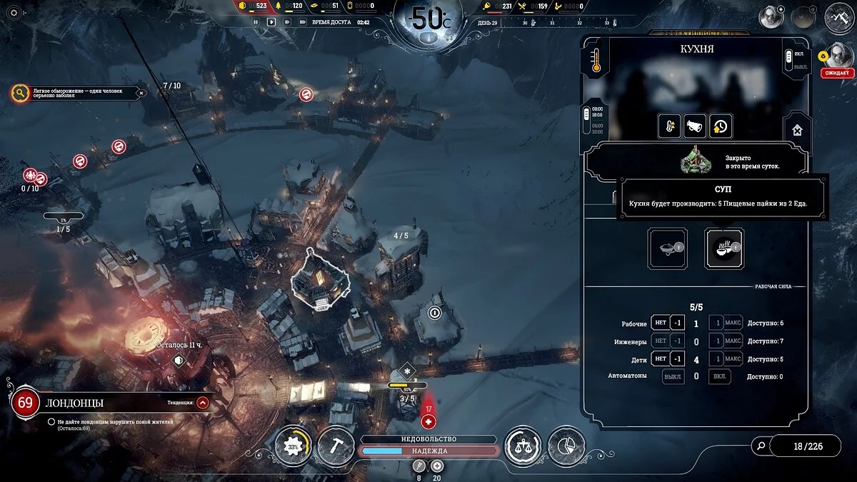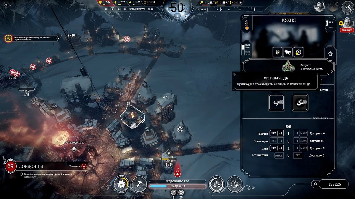 Как в Frostpunk добыть еду и избежать голода. Охотничья хижина или теплица? Сколько нужно еды для завершения сценария?