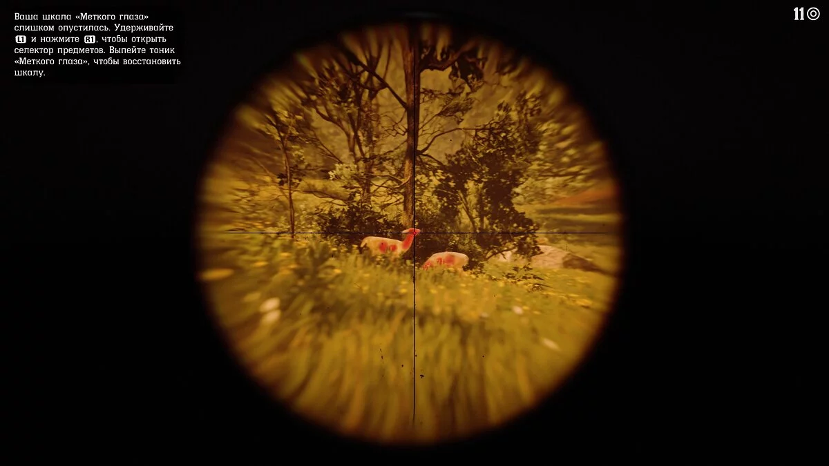 В большинстве игр попадание в голову означает мгновенное убийство — эта система широко применяется в Red Dead Redemption 2, но во время охоты имеет свои границы. Урон, который вы наносите животному, зависит от части тела, в которую попала стрела, нож или пуля.