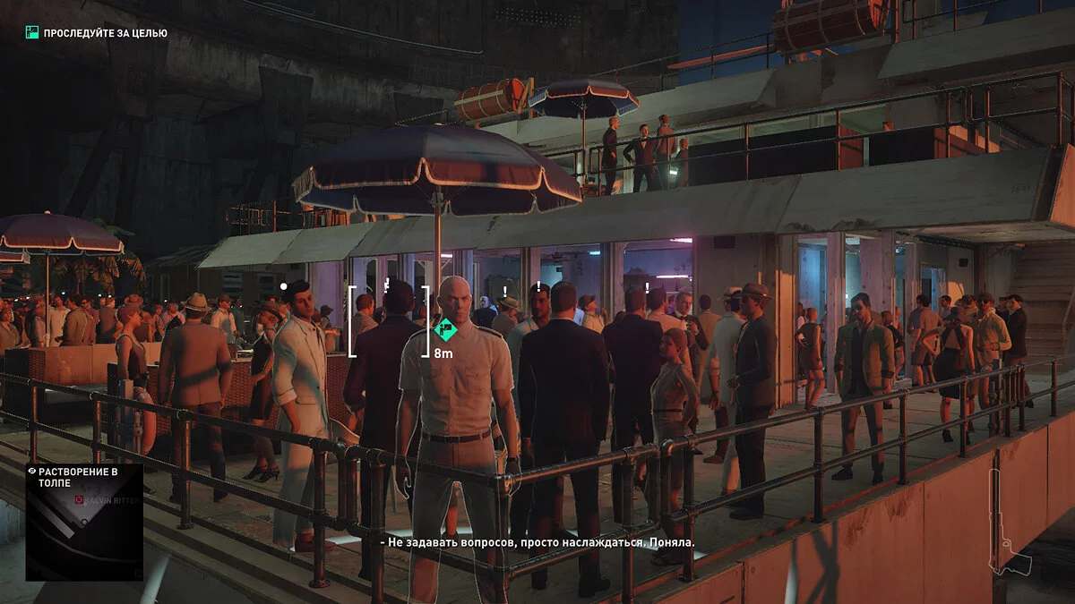 Самые изощренные способы ликвидации цели завязаны на выполнении цепочки квестов. Нужно подслушать пару разговоров, попасть туда, где вас не ждут, ловко спровоцировать цель, используя добытую информацию. Все это требует времени на разведку.