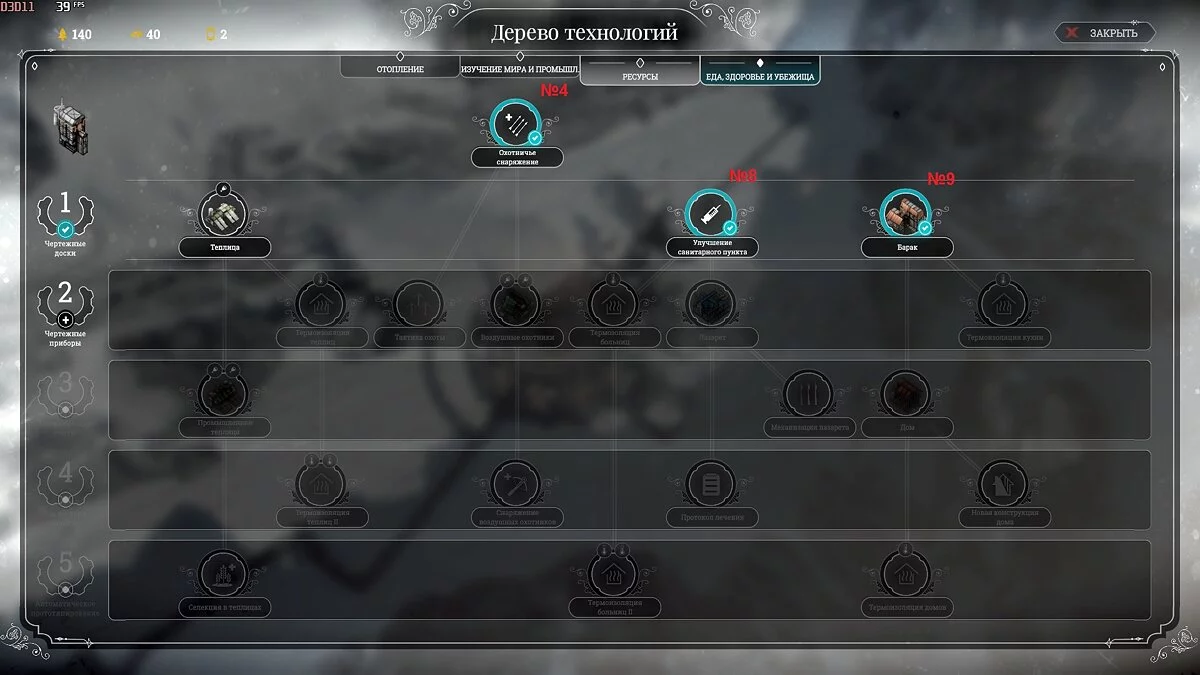 Поставки еды не должны прекращаться — малейшая нехватка вызовет кризис. Инженеров можно перебрасывать, но к 12 дню нужно исследовать первые 10 технологий и жителей первого круга переселить в бараки.