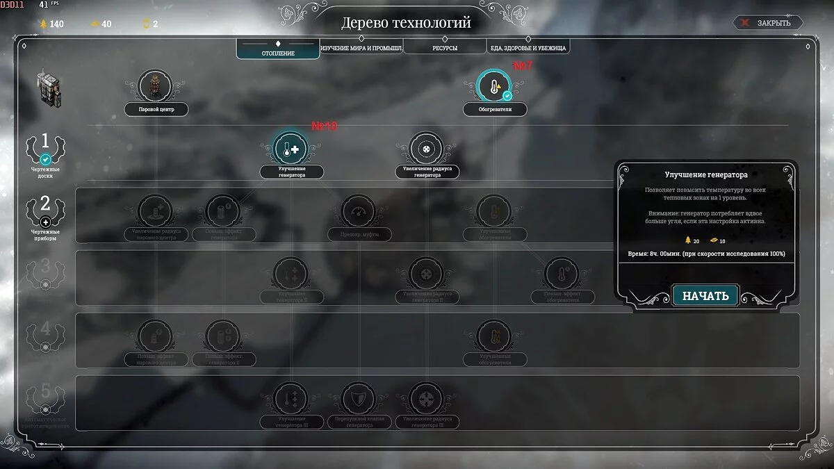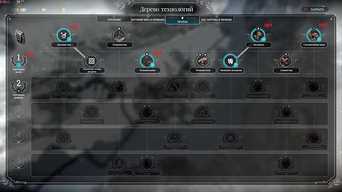 В начале игры очень важно не расходовать лес и сталь понапрасну, не работать на будущее, а покрывать только базовые потребности. Так будет пока вы не исследуете половину технологий, людей не переселите в теплые дома, пока не прокачаете генератор хотя бы наполовину. Экономьте даже на дорогах, прокладывая прямые маршруты.
