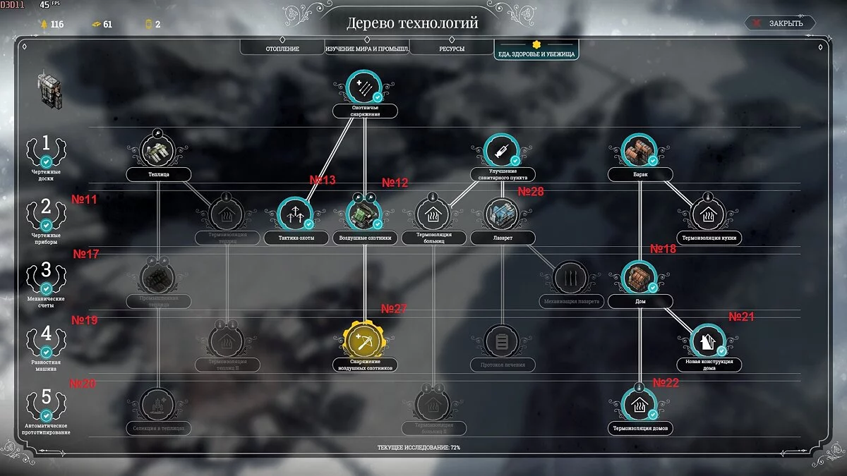В первую очередь исследуйте третий уровень технологий, но конечная цель — пятый (!) уровень технологий, все как мы показали на картинках (порядок может немного меняться под ситуацию):