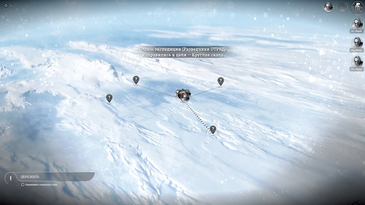Чтобы город рос нужно исследовать внешний мир с помощью разведчиков. Игра подсовывает большой пул точек интереса, причем после каждой бури появляются новые точки, а старые стираются. Приходится грамотно планировать маршруты, исследуя как можно больше до тех пор, пока не налетела следующая буря.