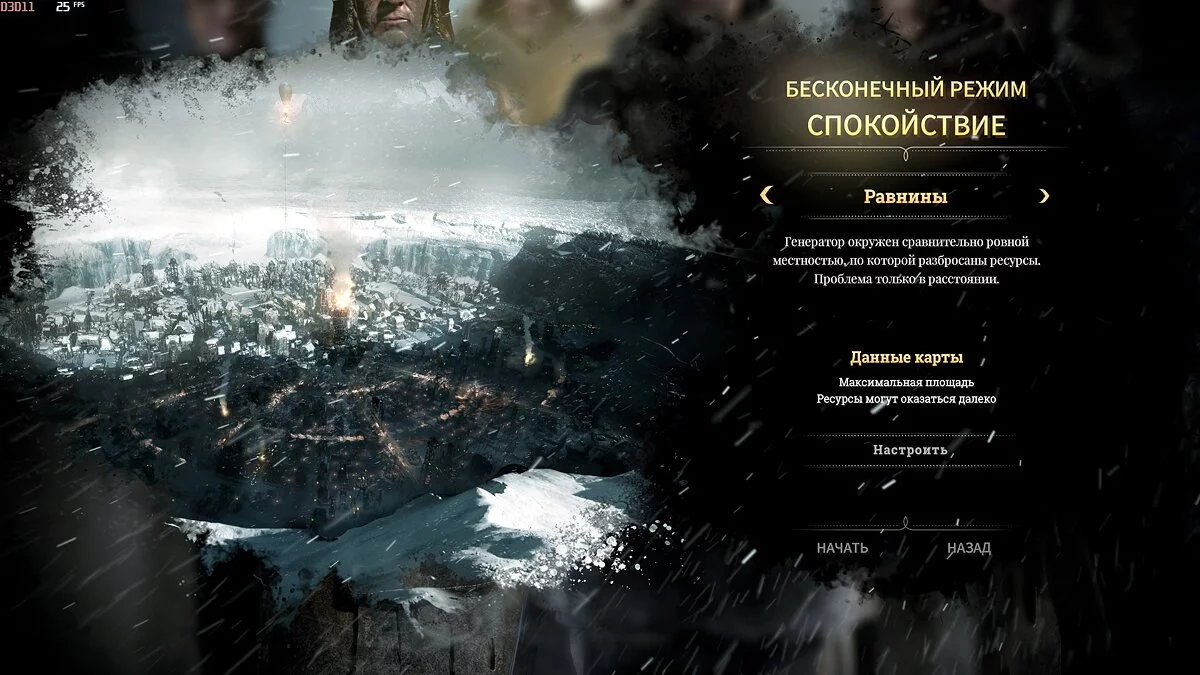 Бесконечный режим Frostpunk предлагает 4 разные карты, одни лучше подходят для «спокойствия», другие для «выносливости». Мы бы не рекомендовали отходить от нашей рекомендации.