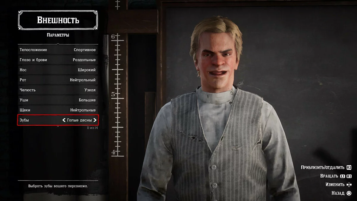 Первое, что я увидел, запустив RDO, так это странный редактор персонажей. Не то чтобы он был слишком скудный на детали, хотя их, к слову, маловато, просто все вариации лица персонажа (неважно, мужчина или женщина) выглядят так, будто создаешь героя для игровой адаптации «Техасской резни бензопилой». Абсолютно каждое лицо выглядит уродливым, а при попытке сделать его чуть симпатичнее, получается еще более ужасная страхолюдина. Однако, поковырявшись минут пять в этом редакторе и изрядно посмеявшись над беззубыми и желтозубыми рожами, мне все-таки удалось сделать более-менее вменяемого персонажа. Ну или я просто смирился с тем, что получилось.
