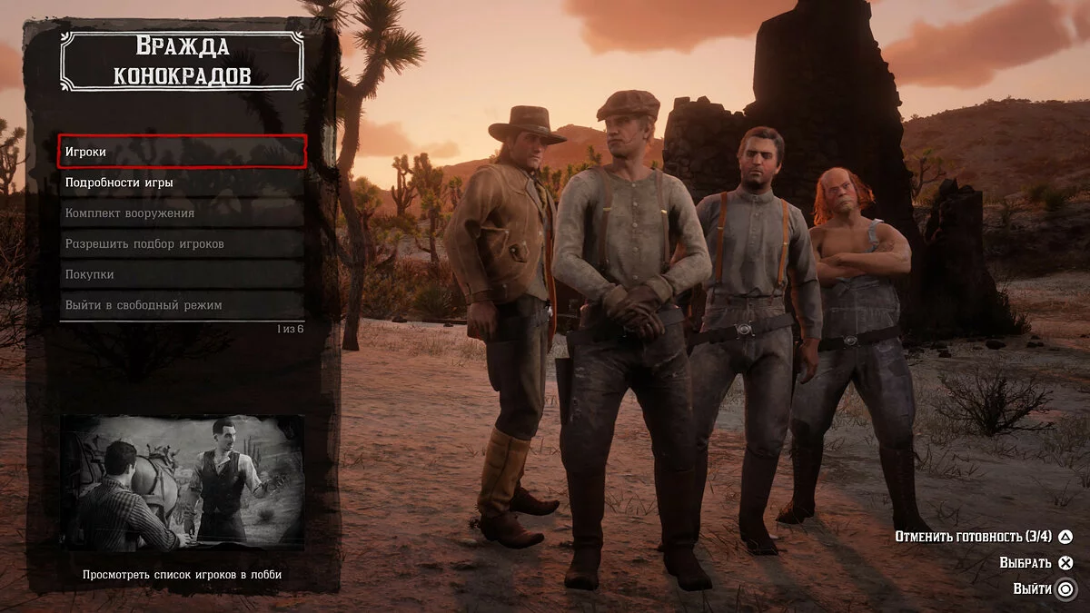 Кроме сюжетных квестов в RDO есть три типа плейлистов. Это такие себе условные режимы, делящиеся на гонки на лошадях, командные сражения (16 или 32 игрока), захват точек и бои, где каждый сам за себя. Есть также прикольный режим, в котором количество очков за убийство зависит от оружия. Чем сложнее из него убивать, тем больше дают очков. Плохо только, что все эти режимы нельзя выбирать. Они запускаются случайным образом. Из-за этого мне так и не удалось опробовать королевскую битву на 32 игрока, ну да ладно, не ради нее я ждал онлайна.