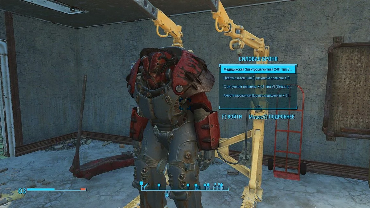 В Fallout 4 силовая броня стала особым видом экипировки. Теперь это не просто надетая на персонажа броня, а отдельный костюм, который использует ядерные батареи для своего функционирования. Силовая броня увеличивает грузоподъемность, скорость передвижения героя, защищает от радиации и дает дополнительную защиту. Комплект силовой брони состоит из нескольких элементов, которые можно заменять на более лучшие модели и чинить в случае поломки.