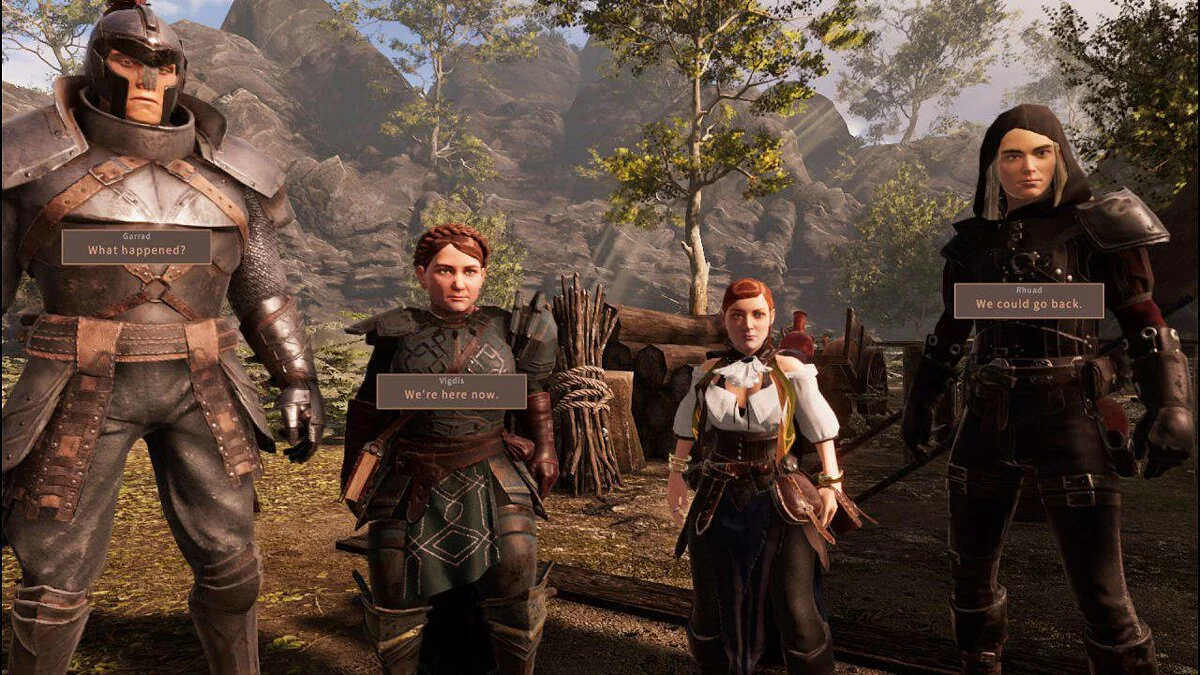 В демо команду отправили на помощь местным жителям, которые сначала встретили героев слегка ворчливо. В ходе разговора можно пару раз выбрать, кто и как ответит: лучник может лишний раз подколоть, тогда как маг будет пытаться разобраться в ситуации.