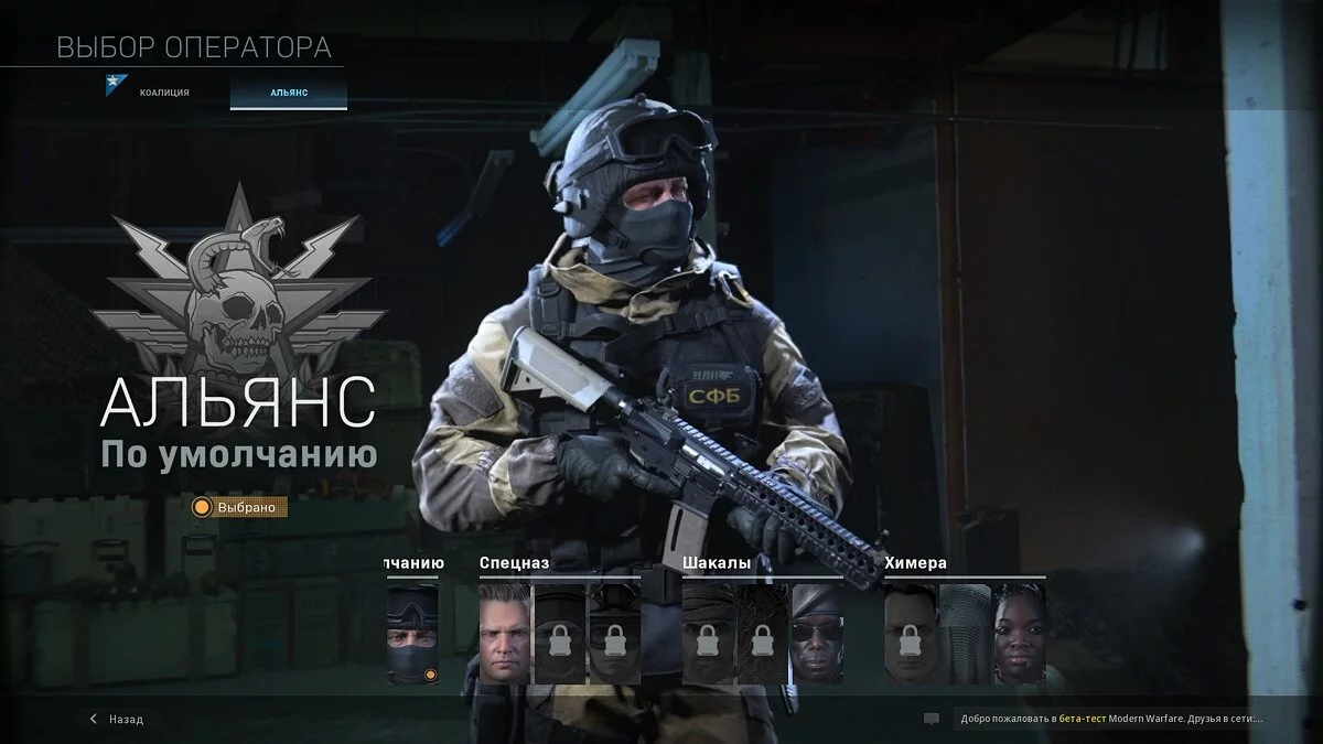 Но сразу же можно выбрать один из нескольких скинов для солдат двух фракций — Коалиция и Альянс. Первая сторона, по всей видимости, представляет войска США и созников, а вторая — группировки сомнительного толка: «Шакалы», «Химера» и, внезапно, русский спецназ. Неужели русские в Modern Warfare снова будут плохими парнями?