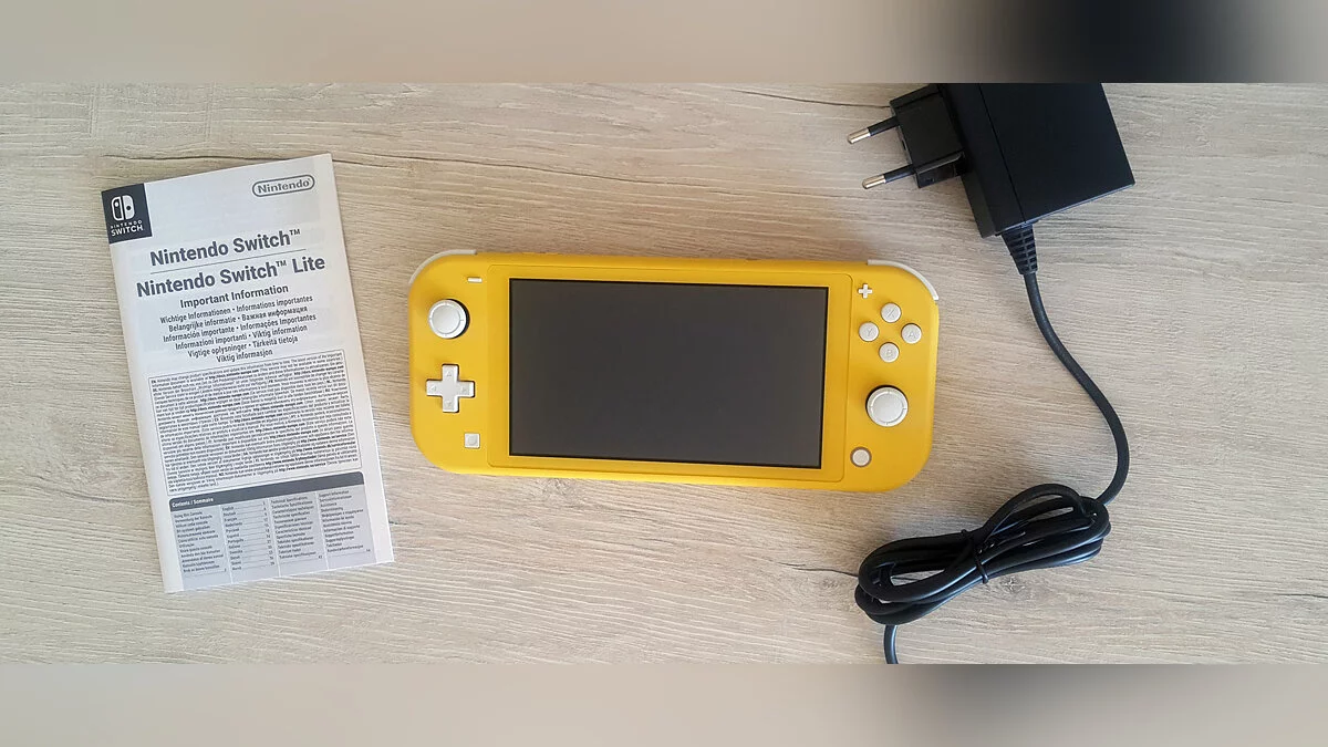 Внутри только самое необходимое: консоль и зарядное устройство. Док-станции и разных приспособлений для контроллеров JoyCon тут нет, так как Lite предназначена исключительно для портативного гейминга.