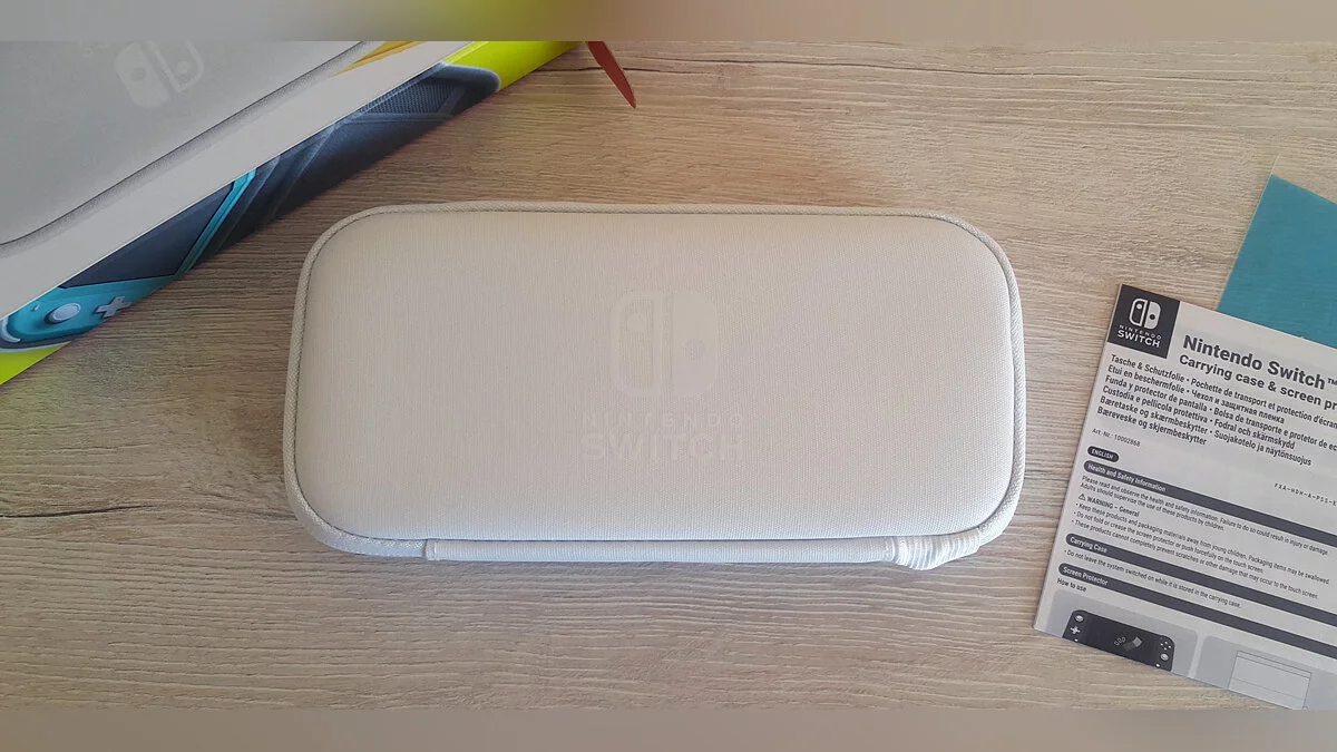 В дополнение к коробке Switch Lite мы также заполучили официальный набор с чехлом и защитной пленкой. Чехол хорошо облегает консоль и защищает ее от повреждений благодаря слою плотной ткани с добавлением пластика. Ну а защитная пленка это просто «мастхэв», особенно для тех, кто играет за пределами дома.