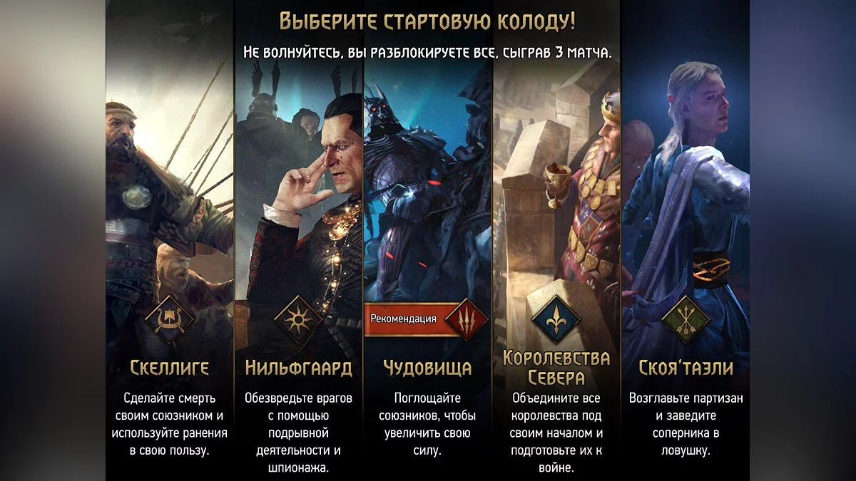 Во-первых, вам проще будет запомнить названия карт и разобраться в фракциях. Во-вторых, у игры довольно низкий порог вхождения. Первые десятки матчей вы без проблем сможете посещать со стартовой колодой, даже побеждая в каких-то из них. А когда у вас появятся новые карты и ресурсы, по встроенному в игру гайду можно смастерить непобедимую колоду.