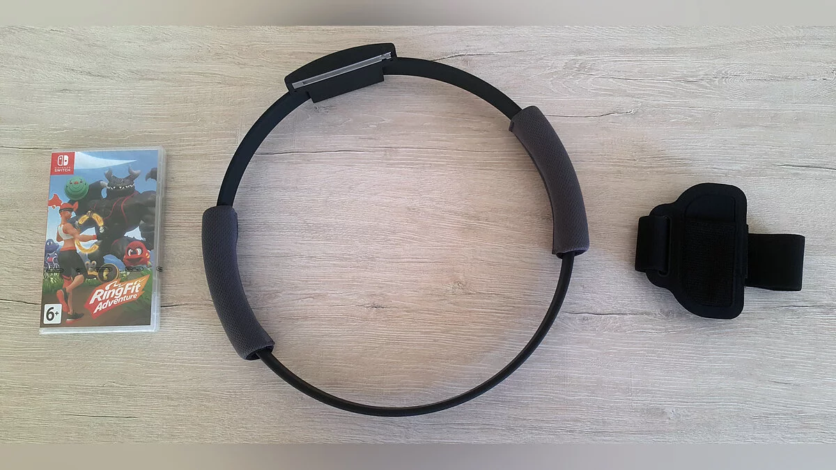 Несмотря на внушительный размер, вес набора небольшой. Большую часть места занимает кольцо, сделанное из легкого упругого пластика с добавлением резины и тканевыми рукоятками. На нем также есть крепление для контроллера JoyCon. Поначалу кажется, что конструкция не очень крепкая, но уже после первой тренировки все сомнения пропадают. Ребята из Nintendo знают свое дело.