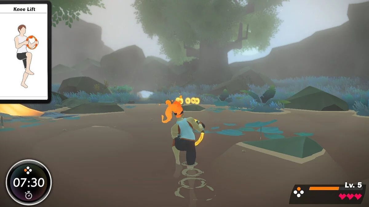 После вступительного ролика начинается в буквальном смысле потный путь по волшебной стране здорового образа жизни. Он условно разделен на миры, в каждом из которых есть несколько уровней с упражнениями разных типов — кардио, силовые, растяжка, йога и так далее. На прохождение каждого уровня уходит от десять-пятнадцать минут. Прямо как утренняя зарядка. И все это под бодрую музыку в духе лучших тайтлов Nintendo.