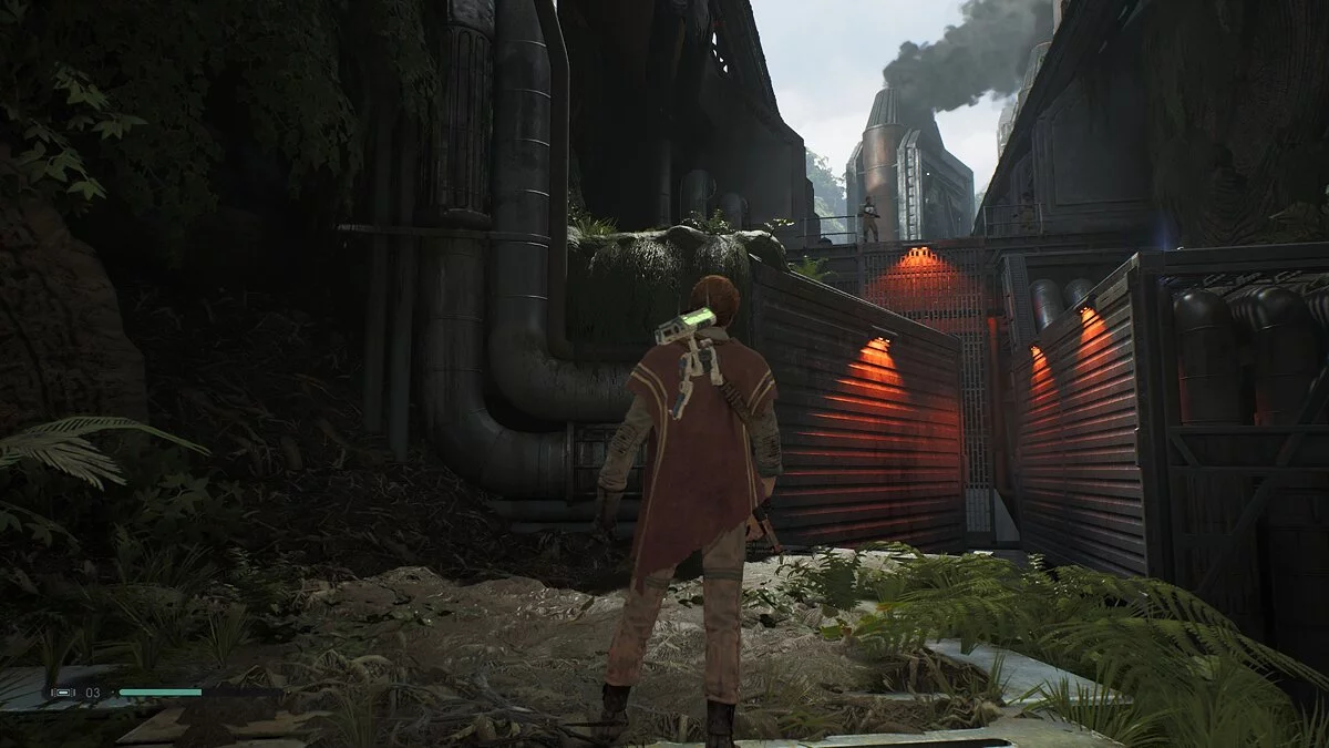 Кэл же большую часть времени проводить в компании BD-1. Абсолютно очаровательный и даже превосходящий по функционалу своих железных коллег дроид. Он постоянно норовит спрыгнуть со спины Кэла, чтобы привлечь внимание игрока к интересному объекту, а заодно помогает герою собирать хлам на уровне, спускаться по проводам и собирать информацию о мире.
