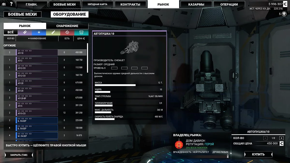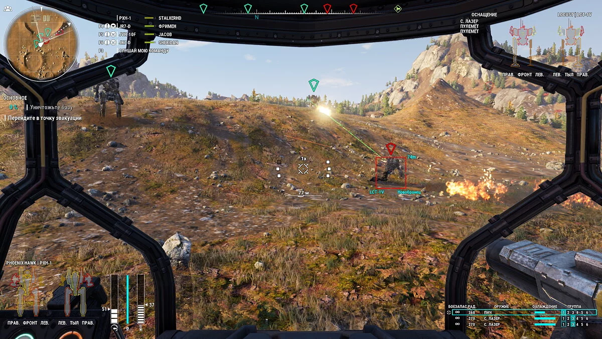Другая проблема — это стоимость выстрела, она очень велика. Роботы в MechWarrior 5 редко когда носят больше 4 видов оружия. Как и в шутерах с человечками, оружие в игре можно разделить на условные категории «пистолет», «дробовик», «автомат» и «снайперка».