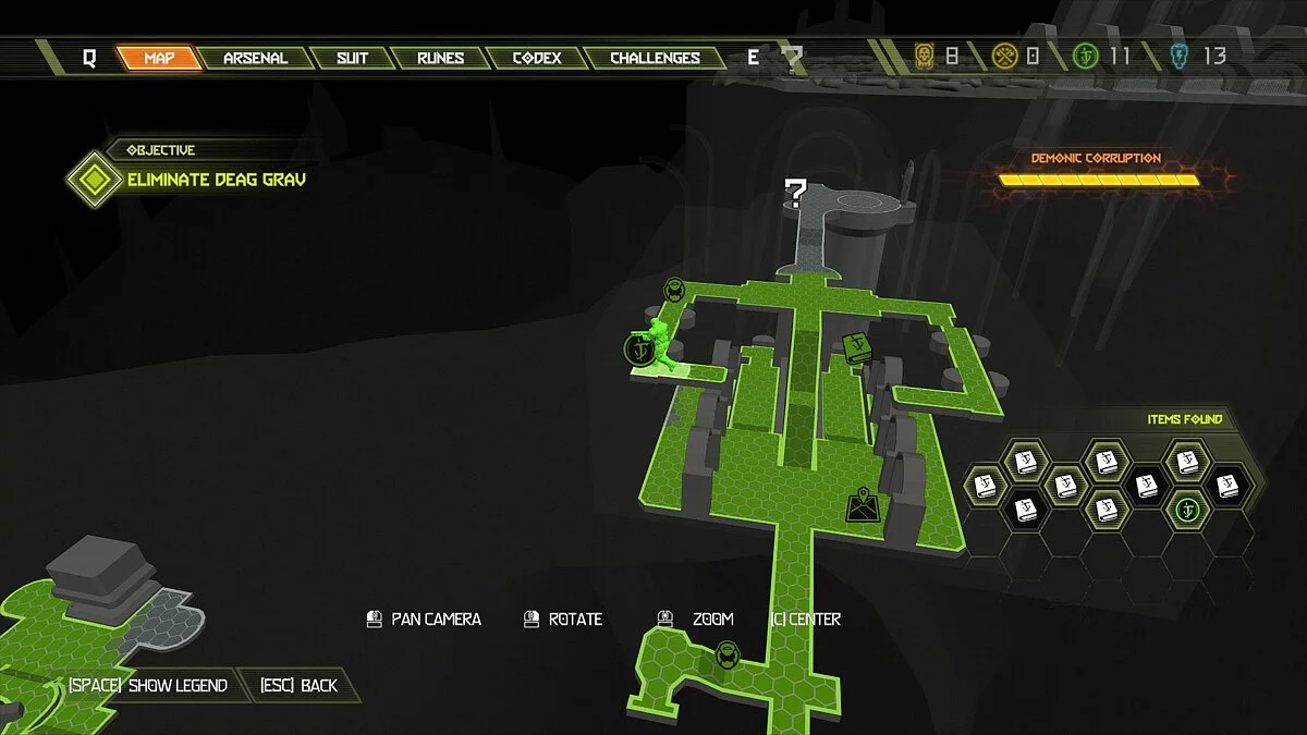 В то время как некоторые предметы, такие как Мод-боты (modbot) и Кодекс (codex), появляются на карте автоматически, когда вы ее исследуете, секреты не будут на ней отображаться, пока вы не пройдете поблизости. Вы узнаете, что прошли мимо одного из этих предметов, когда увидите белый вопросительный знак на карте или большой вопросительный знак в игровом мире.
