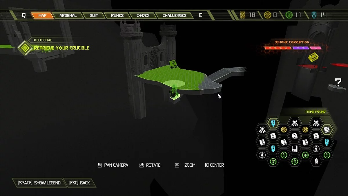 В то время как некоторые предметы, такие как Мод-боты (modbot) и Кодекс (codex), появляются на карте автоматически, когда вы ее исследуете, секреты не будут на ней отображаться, пока вы не пройдете поблизости. Вы узнаете, что прошли мимо одного из этих предметов, когда увидите белый вопросительный знак на карте или большой вопросительный знак в игровом мире.