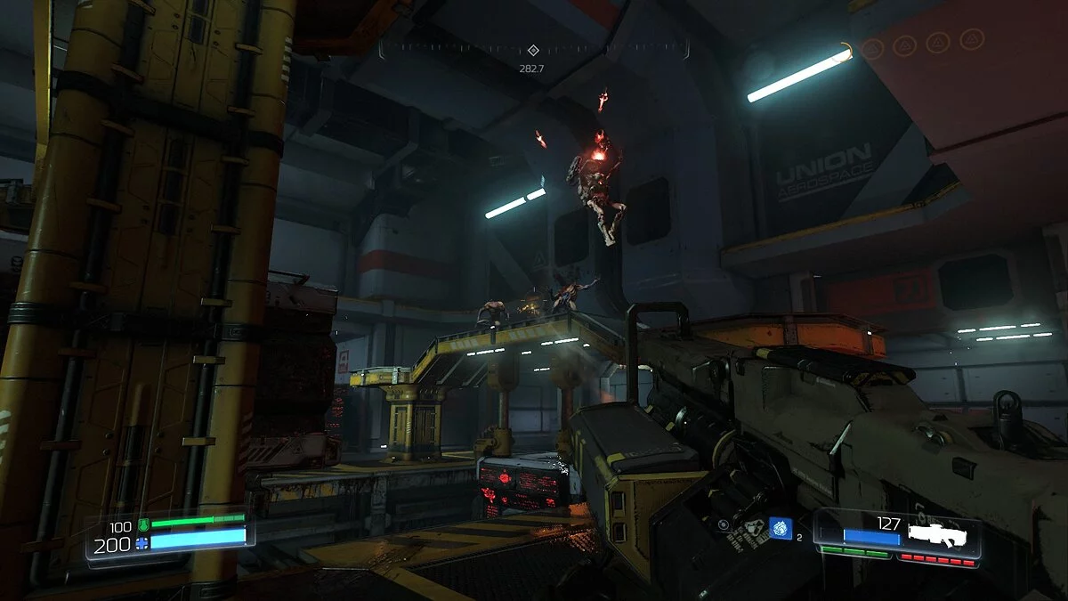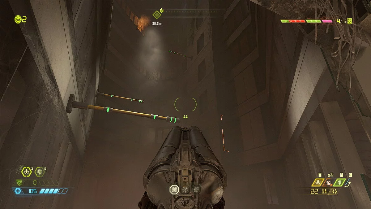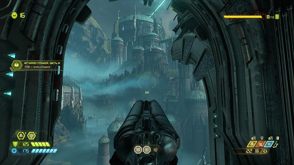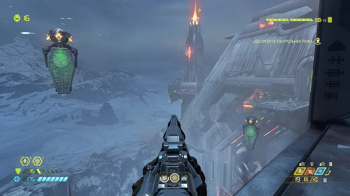 - Навигация — Eternal игра гиперактивная, все время шевелим булками, то есть определяем маршрут и ориентируемся по карте, ищем трамплины, порталы, поручни, задействуем джетпак. В игре 16 года таких возможностей не было и нам хватало обычной моторики.