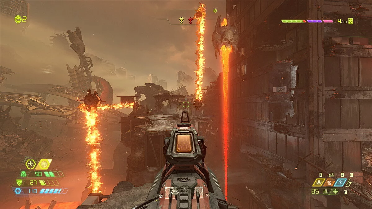 Читая обсуждения Eternal, я часто видел жалобы геймеров, как им трудно управляться с игрой, и они забывают ту или иную функцию. Скажем, бегает-стреляет, умирает — понимает, что надо было врагов залить огнем. Или надо было ударить сильным ближним боем. Или увлекается способностями, забывает стрелять. Увлекается стрельбой, что теряет контроль обстановки и проваливается в пропасть/лаву.