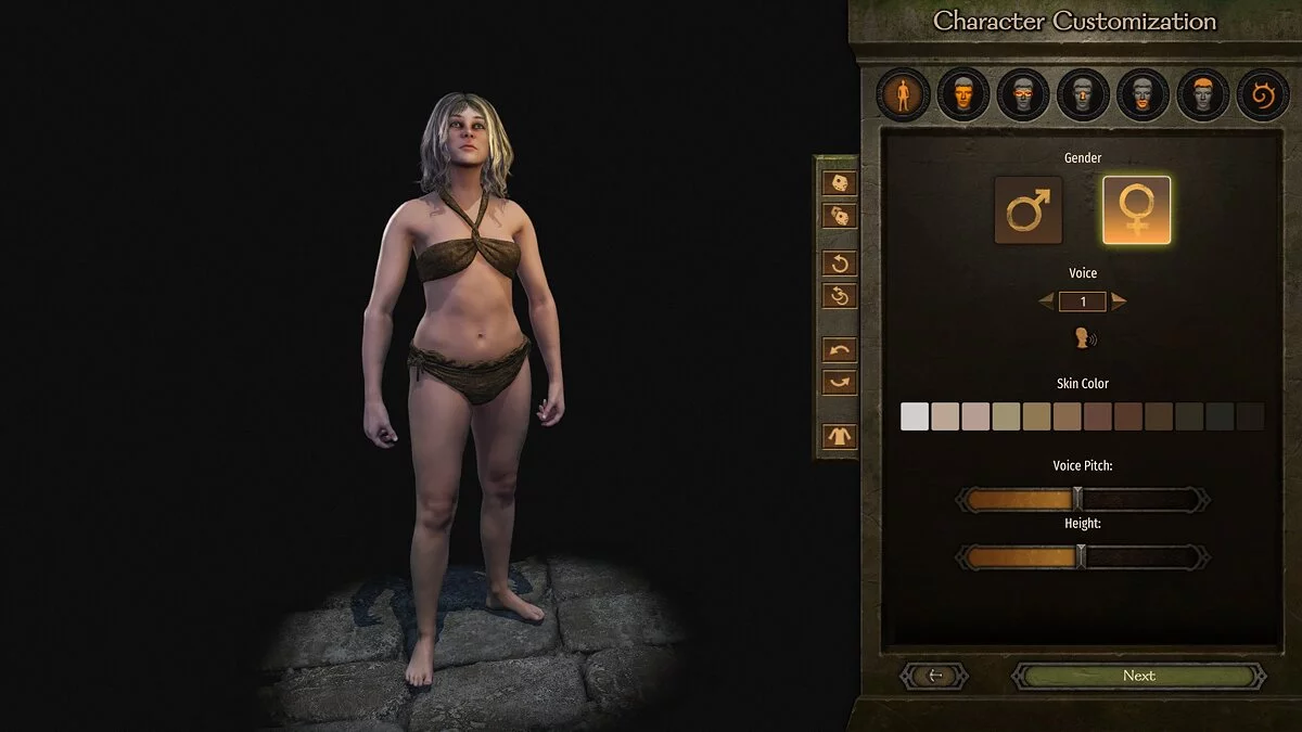 Далее предстоит выбрать внешность. Визуально модельки героев выглядят вполне реалистично, иногда даже слишком реалистично — вы взгляните какие волосы на груди у мужского персонажа. Да и женщины в игре вполне соответствуют современным реалиям: какой параметр ни выбери, всегда получается сильная и независимая. А параметров действительно много. При должном умении и терпении слепить можно кого угодно от Игоря Николаева до Геральта. Однако в этом и кроется сложность: такие редакторы внешности обычно сложны в освоении, и большинство игроков, скорее всего, вылепят совсем не Галатею. Так что, если хотите симпатичную эльфийку-протагониста, которую можно сваять тремя кликами мыши, то вы ошиблись игрой.