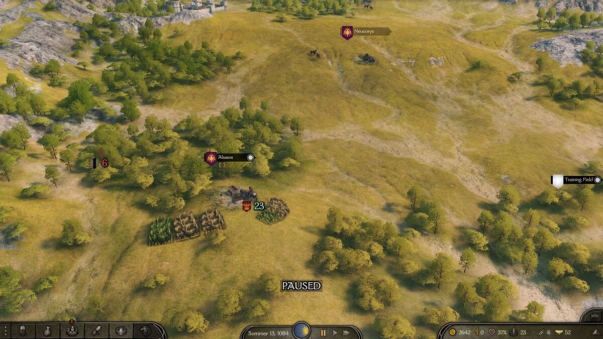 Далее игрока просто бросают на карту и все. Вы вольны заниматься чем угодно, а заняться есть чем. Карта — один из основных режимов Mount & Blade 2. Здесь можно путешествовать между поселениями, искать квесты, торговать, нанимать рекрутов, преследовать караваны или бандитов. С последними получается особенно весело: их приходится преследовать буквально по несколько дней. Дело в том, что нападать на кого-то покрупнее и помедленнее силенок не хватит. Вот так и получается, что, понадеявшись на легкую добычу, гоняешься уже вторые сутки за кучкой оборванцев в рваных штанах.