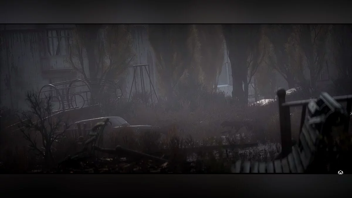 Вспышки на заднем плане могут быть раскатами аномалии, похожей на «Электру» из оригинальной игры. В третьем кадре разработчики крупным планом показывают пробегающих слепых собак. Надеемся, что их напугала химера или кровосос, это ведь одно из самых опасных мест в Зоне.