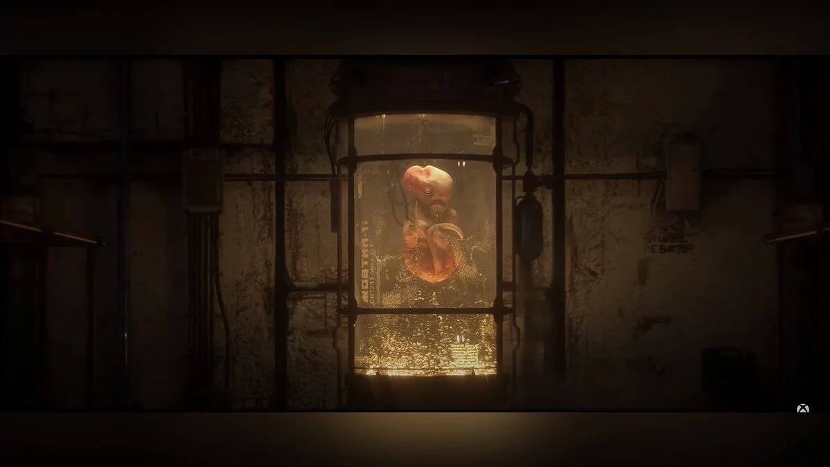 Если посмотреть на официальный скриншот, то он, видимо, показывает левую часть картинки от трейлера — колбу с непонятным мутантом и далее две разбитые колбы. Компоновка уровня напоминает микс между Х-8 и Х-16.