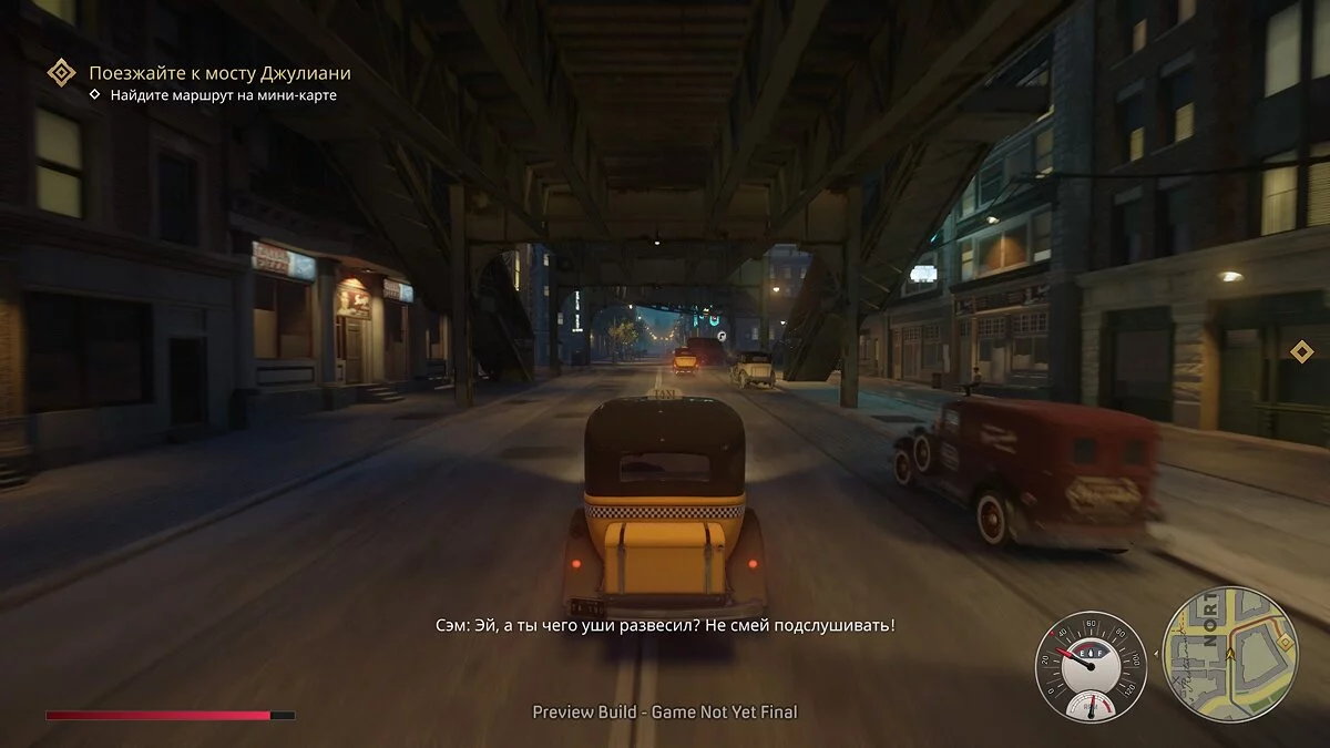 Задумки сценаристов уже сейчас кажутся неоднозначными. В оригинальной Mafia потрясающий сюжет. Зачем, казалось бы, в нем что-то менять? Как же хотелось увидеть легендарную сцену вступления Томми в семью без сюжетных изменений. Но нет, главный герой отправляется разбивать машины Морелло, не успев, собственно, стать гангстером, и только потом его принимают в семью. Выглядит — спорно.