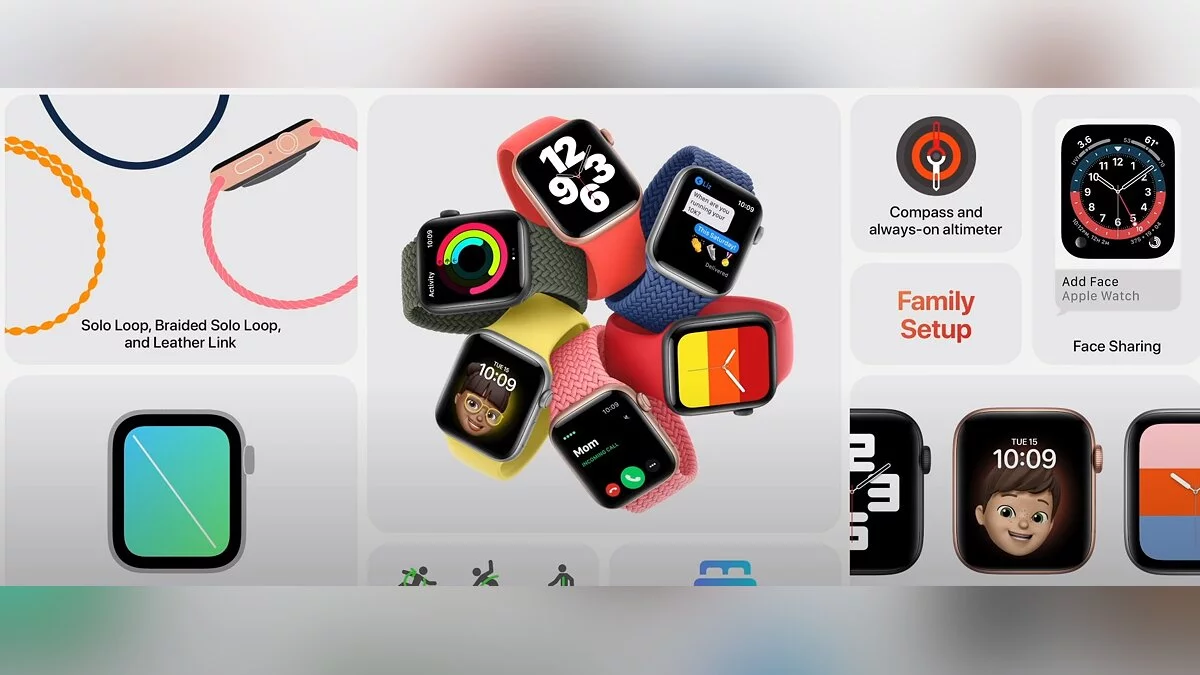 Также в Apple Watch Series 6 появится измеритель высоты. Спящий режим будет работать в два раза ярче, а еще появилось несколько новых циферблатов. Сам браслет теперь растягивающийся и без застежки. На выбор либо плетеный браслет, либо силиконовый. Также часы обзаведутся семейным доступом. Несколько Apple Watch можно привязать к одному iPhone. Противоречивым для многих решением станет разве что необходимость покупать адаптер отдельно.