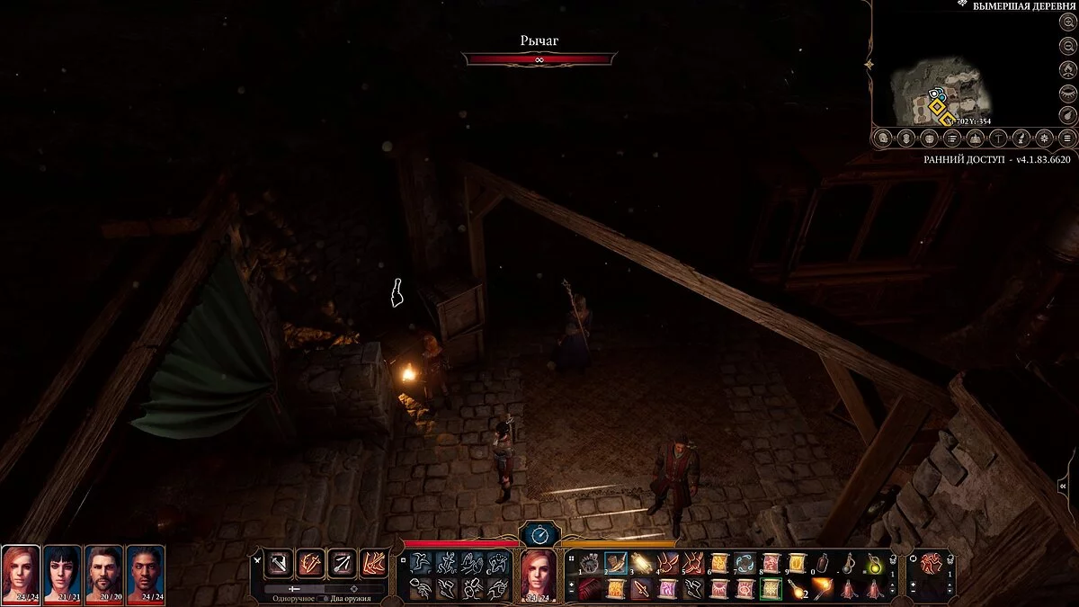 Larian намеренно не ведут игрока за руку, а заставляют его осматривать каждую мелочь и экспериментировать с окружением. Я был приятно удивлен, когда сработала проверка на внимательность, и мой герой заметил царапины рядом со шкафом. Становится понятно, что его нужно переместить, но каким способом — нам не говорят. После десяти минут раздумий и поиска другого входа, я решил сдвинуть ящики, и с удивлением обнаружил за ними нужный рычаг. В такие моменты помогают разбросанные повсюду записки и книги, которые так или иначе раскрывают окружение и дают игроку подсказки. К сожалению, не все тексты переведены на русский, но это тоже пока спишем на ранний доступ.
